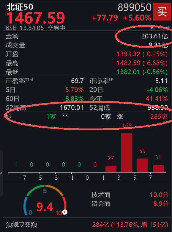点开一看,13:34那会北证50成交额也就200亿元出头,和去年928行情后连续天天400亿元比,不算什么。