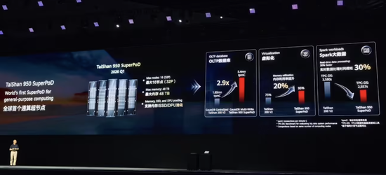 除了 AI 算力,徐直军还甩出全球首个通算超节点 TaiShan950 SuperPoD,基于鲲鹏 950 打造,最大 16 节点(32P)、48TB 内存,还支持内存 / SSD/DPU 池化,2026 年 Q1 就上市,直接喊出 “大型机、小型机终结者” 的豪言!